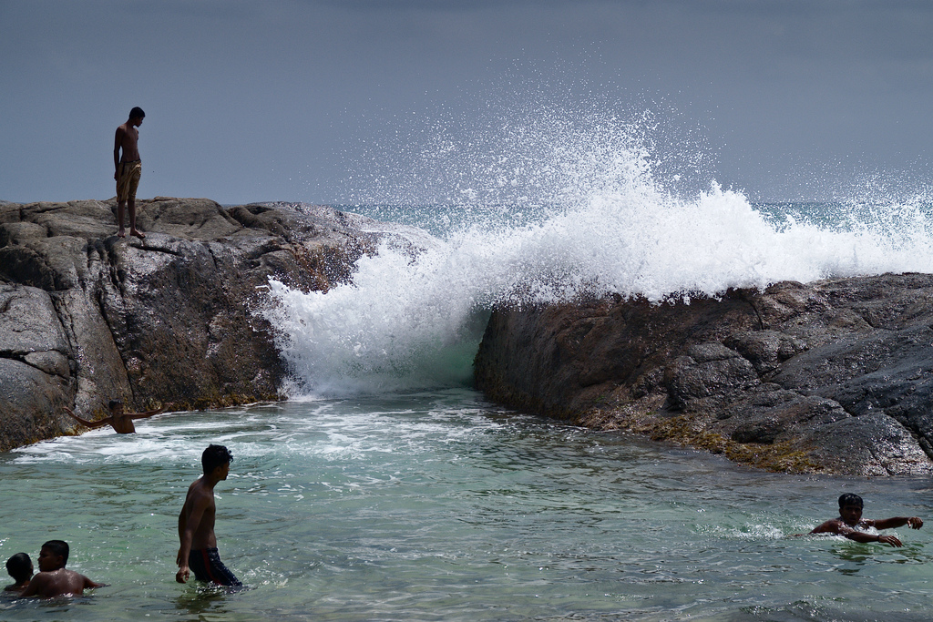 sudden high waves splashing into the pool gave an additional thrill to the kids bathing in there.