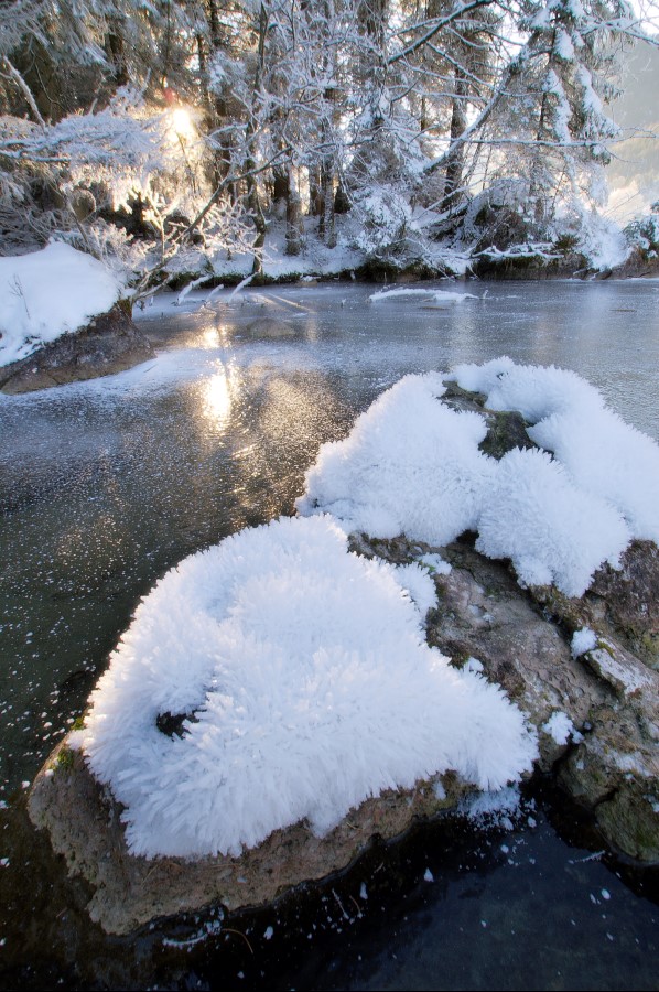 this year’s winter is almost non-existing here in Berchtesgadener Land. Only in shadowy valleys in the mountains it is cold enough for skateable ice. there I found these beautiful frost flowers on some rocks in a landscape from a fairy tale.