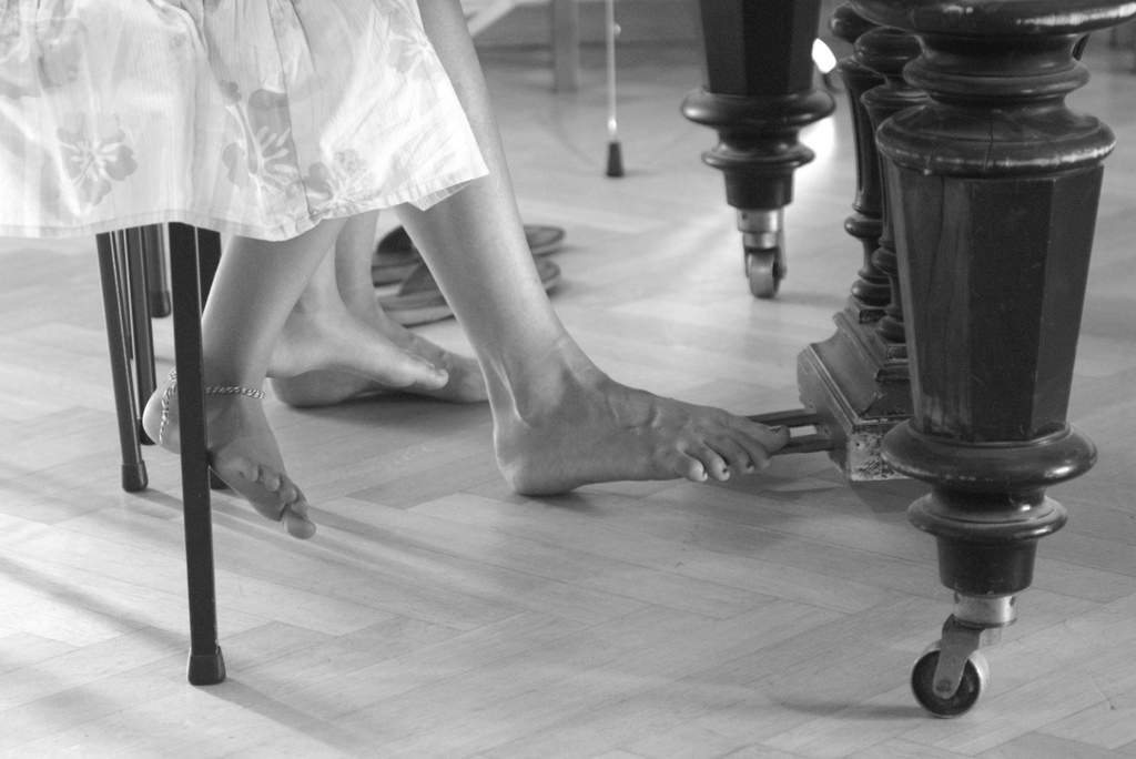 how to symbolize a music schools summer concert where children show what they have learnt in the last six months? listening intently to the performance of a girl together with her mother playing four-handed on the piano, i suddenly realized the nice composition of their feet