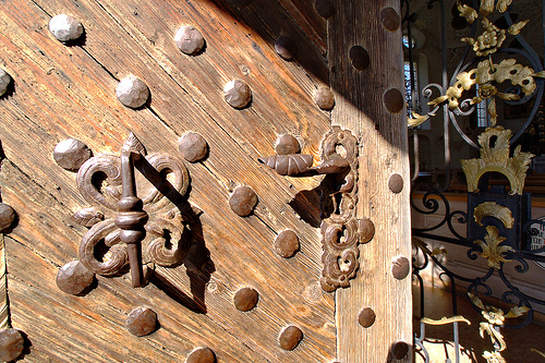 the sun was in the perfect direction and angle to highlight the iron nails and the lock as well as to shed some light on the the cast iron trellis with its golden coating