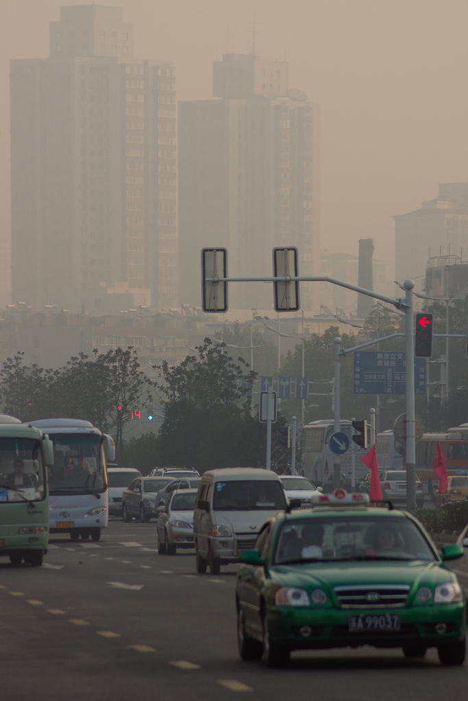 air quality however is deplorable as you can guess from this shot. some bicycle riders use masks covering nose and mouth, but those of course will filter only the largest particles. as long as the factories and power plants around are emitting unfiltered, the air quality will not improve.