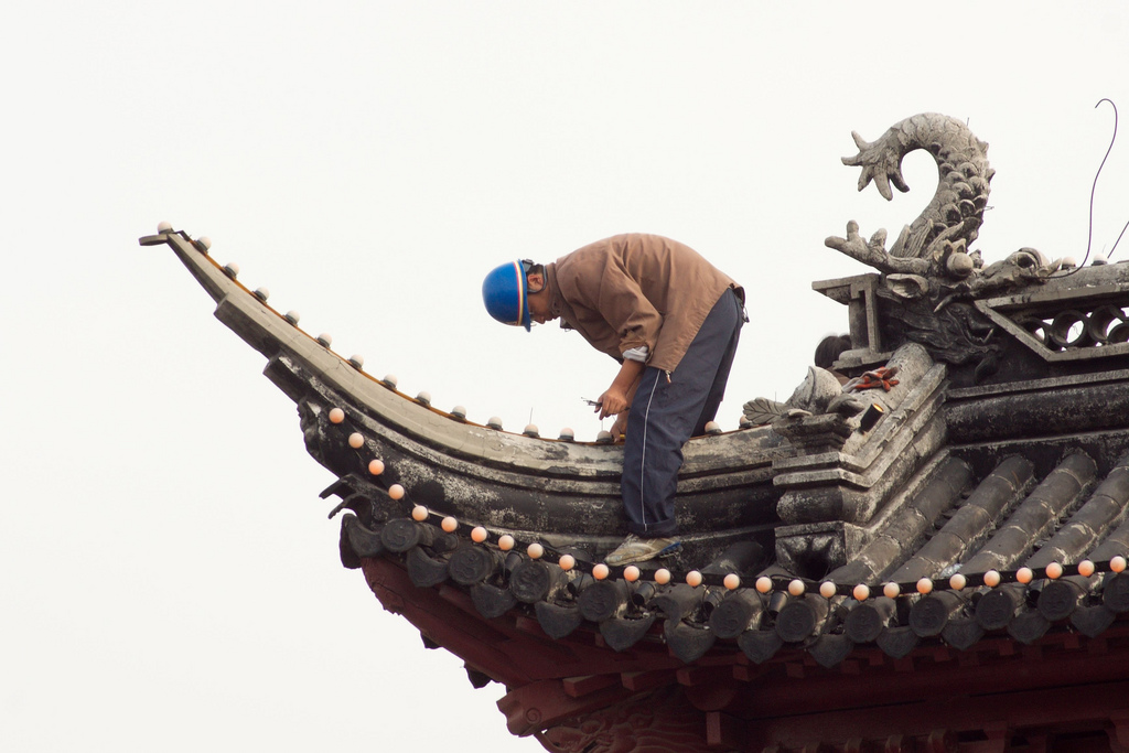 the scenery to the right unfolded itself just outside of the temple, quietly and unspectacular. glad to have my long tele zoom with me, i just had to wait for the worker to take the right pose.