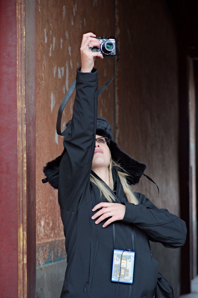 the forbidden city of course was full of people photographing, themselves like the lady in the lead picture (which i found amazing in the iuxtaposition of a single figure against those incountable roofs), each other, the architecture, also me. a european man with a ponytail is so extraordinary that especially gals wanted me to pose together with them. but how can i blame them when i was interested in chinese faces and people.
