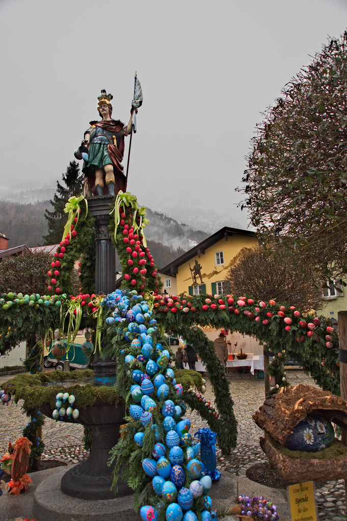 rainlight saving time started today. ‚dis is a well thought out marketing idea of some leasure outfits lobbyists, nothing else. as bavaria is really strong in traditions, we had our easter egg fountain this year again, with more than 4000 hand-painted eggs. closer inspection leaded to the conclusion, that guinness beer now got incorporated into our cultural heritages, along with more halloween style eggs.