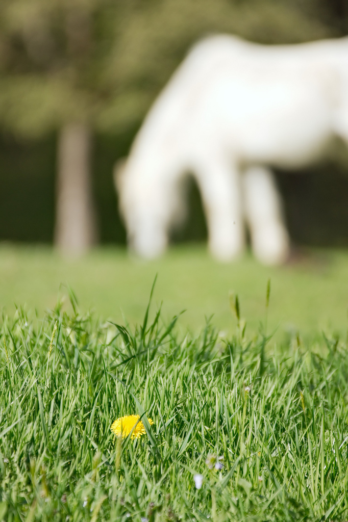 the animals enjoy the fresh pasture, too. this white stallion grazes at schleicherhof, subject of yesterday’s post, and enjoys its charity. with probably 30 years (24 according to the horse trader, but popular wisdom here in germany recommends to never believe a horse trader) there is no work any more, maybe a bit posing for the kids and the tourists, not to forget the photographer.
