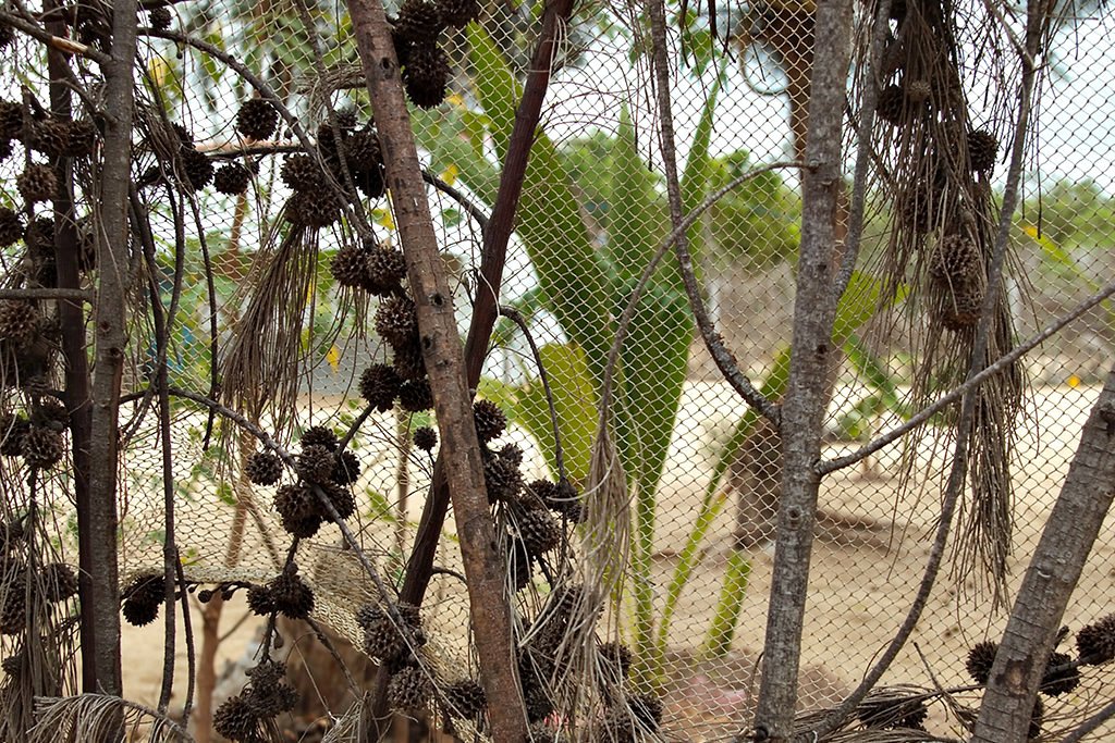 the fence, too, is a case of recycling: the net was beyond repair and unsuitable to catch fishes any more. it still is, however, fit to keep the hen in the garden. together with the pine twigs and the cones optically it makes up for a fine structure.