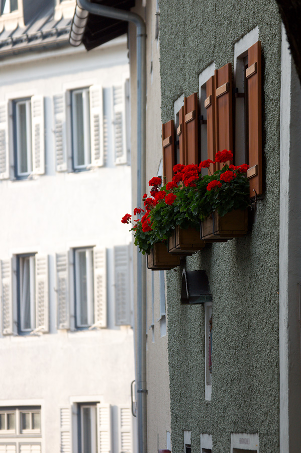 In the city, where the temperatures yet don’t become really low at night, the geranium plants in the flower flower boxes still show their full colors. Geranium are traditional adornment for the houses here in Bavaria. They require however daily care in form of removing the old leaves and dry blossoms, otherwise the start to degrade only too fast, blaming their owners as careless.