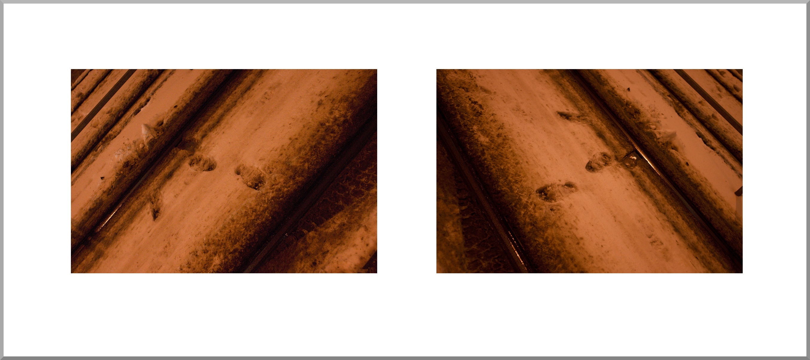 While it is not always convenient to take photographs during winter time, leastwise it is a challenge: familiar subjects change completely, some vanish, others appear, many of them in a quite volatile way, especially when related to snow. Seeing better the more images I take, the orange-yellow color of the snow catched my eye. Together with the black lines of the tramway tracks and the irregular patterns of the pedestrian’s tracks it formed an image where the conversion of matter by light and framing becomes a subject in its own sense. And yes, I am onPaul Butzi’s side, when he emphasizes the importance of subject. If there’s no connection between my mind and the subject, no image will start to exist, just a wasted file.