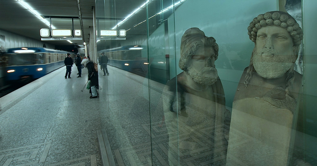 So today’s image is a snap taken when returning from a meeting via subway: One of the stations, next to the museum quarter in Munich, exhibits some replicas of greek statues, hijacked by a graecophil Bavarian king and since then shown in a local Museum.