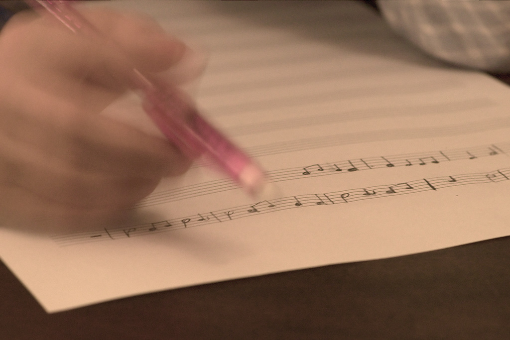Rehearsing an instrument is not always a joyful time for a kid, and therefore the moments where the music grabs the mind and inspires the phantasy are even more precious. When this happened and she grabbed music paper and a pencil, I was happy to have the camera at hand, and even more happy to have that phantastic old 1.4/85mm lens.