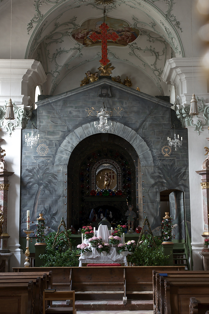 Maybe I should make a story wallowing in self-pity, coming two days late for the Holy Grave of the Höglwörth abbey church. The specialty of this Holy Grave is, that it is only shown every third year, and is only shown on Good Friday and Holy Saturday in it’s full beauty . But then, I have to admit, I am not so fond of these overly vivid decorations, reminding me more of a contemporary indian bus driver cockpit then a typical christian church.