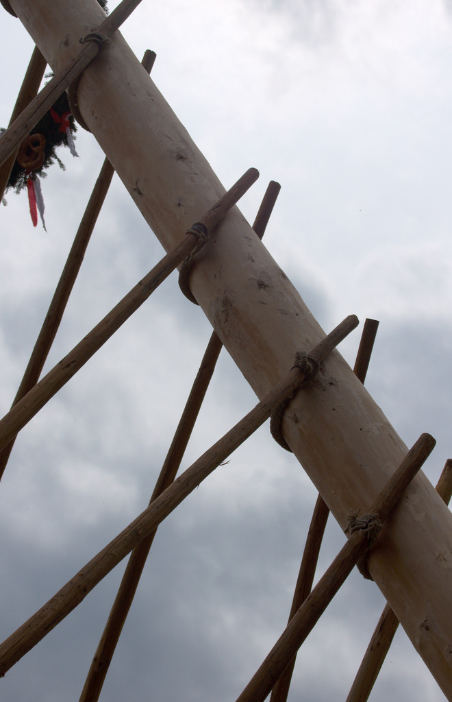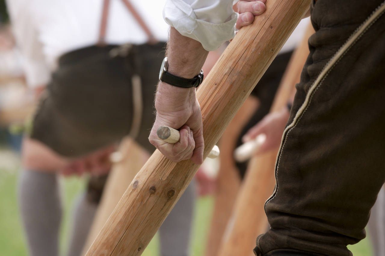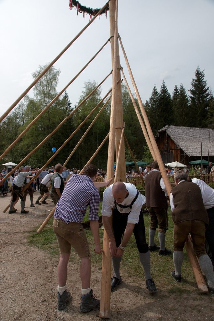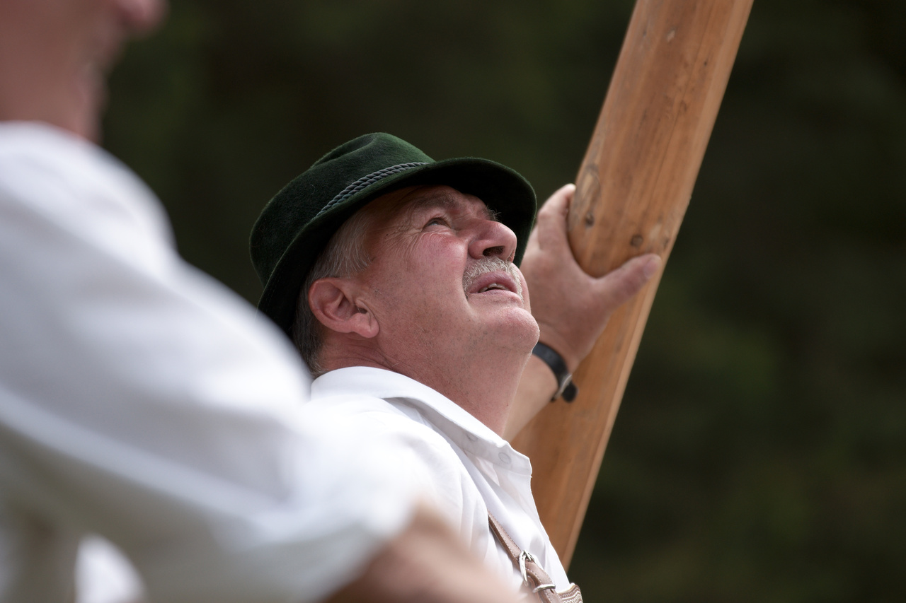 Just across the Austrian Border, the traditional costume association „D‘ Lattenberger“ set up the maypole in the museum village of Grossgmain. Instead of the blue-sky-green-grass sceneries I’d like to present some details which make pretty much the essence of the procedure – which is the important thing, not the final result itself.
