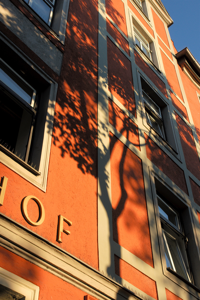 The house in the image to the right was already subject of a post, here. This time I got a glimpse of the shadows‘ play out of the bus window, and instead of changing immediately (and reaching the office early) I decided in favor of the sunlight’s spectacle on the walls. Processing of these images was easy – early morning front light doesn’t stress the dynamic range too much – but the leading image did benefit from some selective fill light at the bottom. Bibble5 as usual, it gets improved every minor version step. That it still lacks some of the plugins of the 4 version, this for me is more then compensated by the possibility to work in regions on the raw file itself. Definitely a straightforward workflow for no-frills raw conversion.