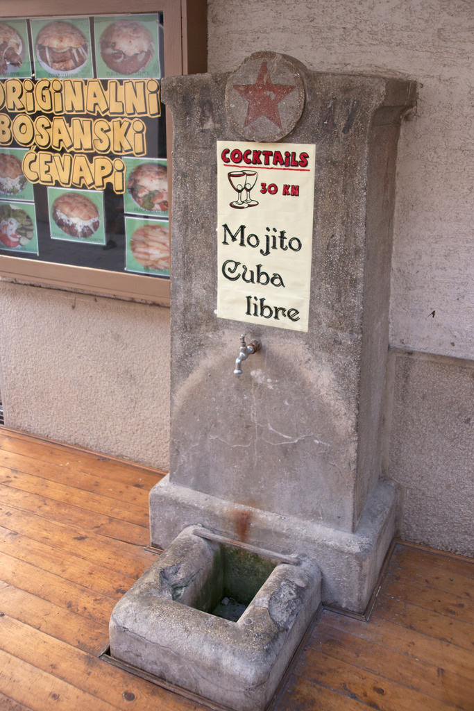 There is not much left from the importance or even glory of the once ruling communist/socialist party and their world-shaking ideas here in Krk. The only visible leftovers are some fountains (like here) and plates, but besides that: Cuba libre is just the name of the drink, and this fountain is degraded to a cheap billboard. Not that there is any reason to glorify those times, yet some sensitivity for the history is everything else but superfluous.