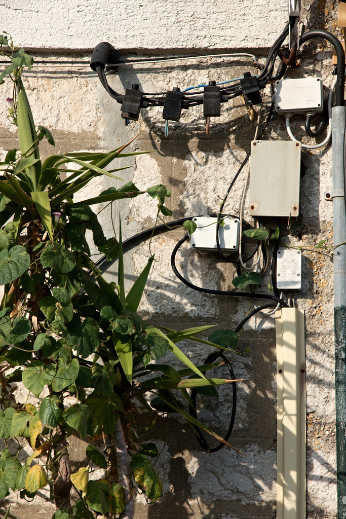 Aaarg. It reminds me of my own spaghetti behind the desk and adjacent cabinet that hold a computer, monitor, printer, two lamps, a stereo sound system, a DVD, a VCR, two TVs (one English, one Austrian), two cable boxes, a modem, router, telephone and clock. I’m convinced you could photograph my mess and make it look interesting….