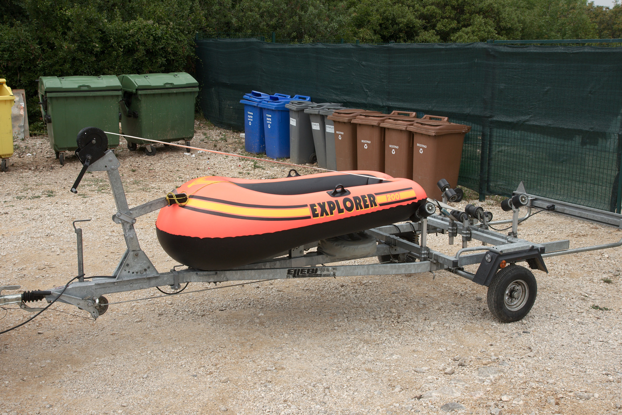 Nota bene the battery of trash cans in the background: Maybe the situation is a bit intimidating for the little boat.