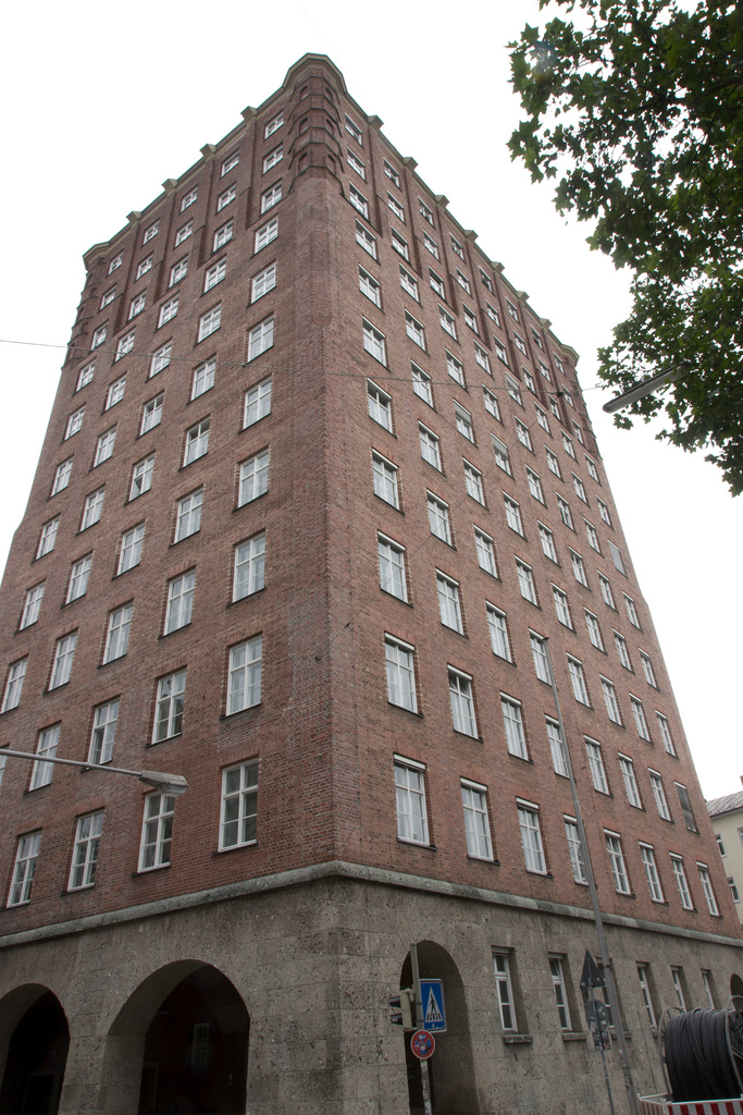 The City of Munich is proud of its villagey character and therefore has decided in the year 2004 not to allow new high-risers to be built in the (largely drawn) center of the city – only outside the ring streets this remains possible. But in the very center of Munich there still is a 12-storey building, erected 1928 following the plans of Hermann Leitensdorfer, as the then technical/engineering town hall for the city administration. The most interesting part inside is probably the staircase in an extremely sober style of New Objectivity, yet still the influence of a bit of Art Nouveau’s stylistic vocabulary seems to be visible.