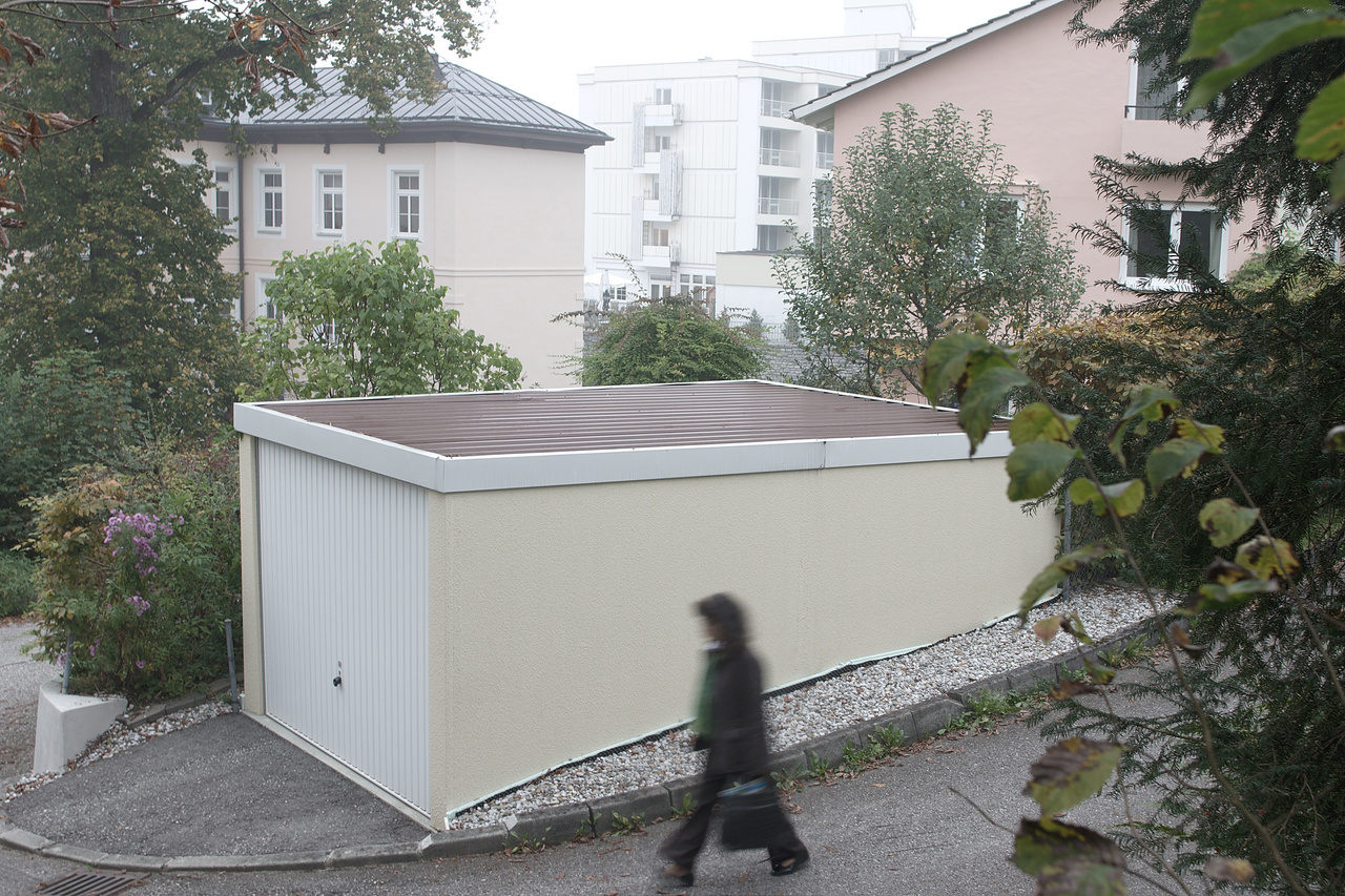 Hearing descending steps on the road below, I decided to react quickly: Dialling down the ISO, cramming in the slowest possible f-stop I estimated I should get a low shutter speed, slow enough to render the pedestrian in a blurry manner, avoiding the impression of a frozen moment and setting her in contrast to the static rectangles of the buildings. I managed, and internal stabilisation helped to keep the sensor steady.