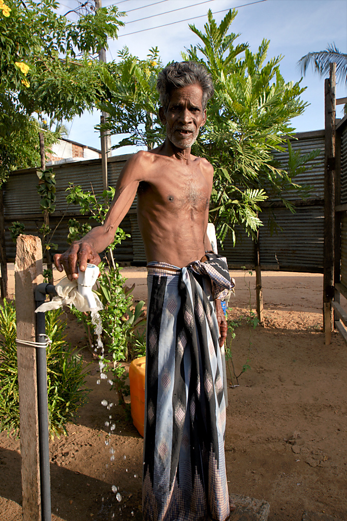 But I have seen regions of our world where this is not the case. Regions, where children or elderly people die because of the lack of clean drinking water. Regions where you call yourself lucky if there is a single water outlet on your premises which, and this borders on sheer luxury, provides clean water at least for the greater part of the day. This old man in Kalmunai, Sri Lanka, now is in this lucky situation, and he is grateful for it. A much too big number of people is not.
