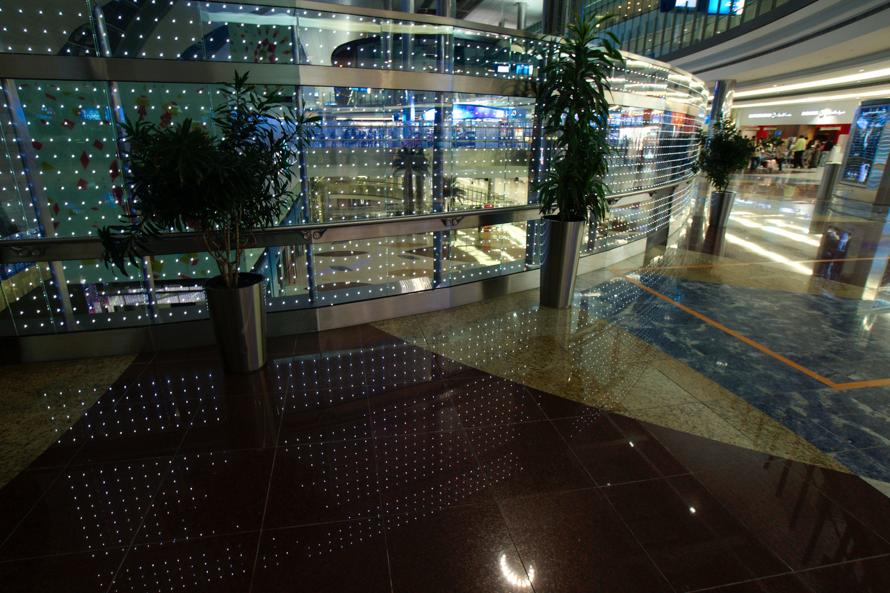 Dubai Airport is astonishing again and again – whenever I come there it seems to have grown, expanded, become more luxurious. But I can’t help feeling also some backward orientation: The whole thing seems to live in the firm belief that our utmost materialistic and oil-based economy will continue without end, pursuing the American belief of „bigger is better“. The United Arab Emirates will probably be the last ones to suffer under ending oil reserves, but if all others do, an air traffic hub of these dimensions may be useless, the investment invalidated, the concretized money missing for the necessary investment in the change of the oeconomical system. But it seems that Dubai Airport will continue to grow with yesterday’s dreams, simple because they are the most proficient means to seduce people to spend their money in short-lived (in-)utilities.