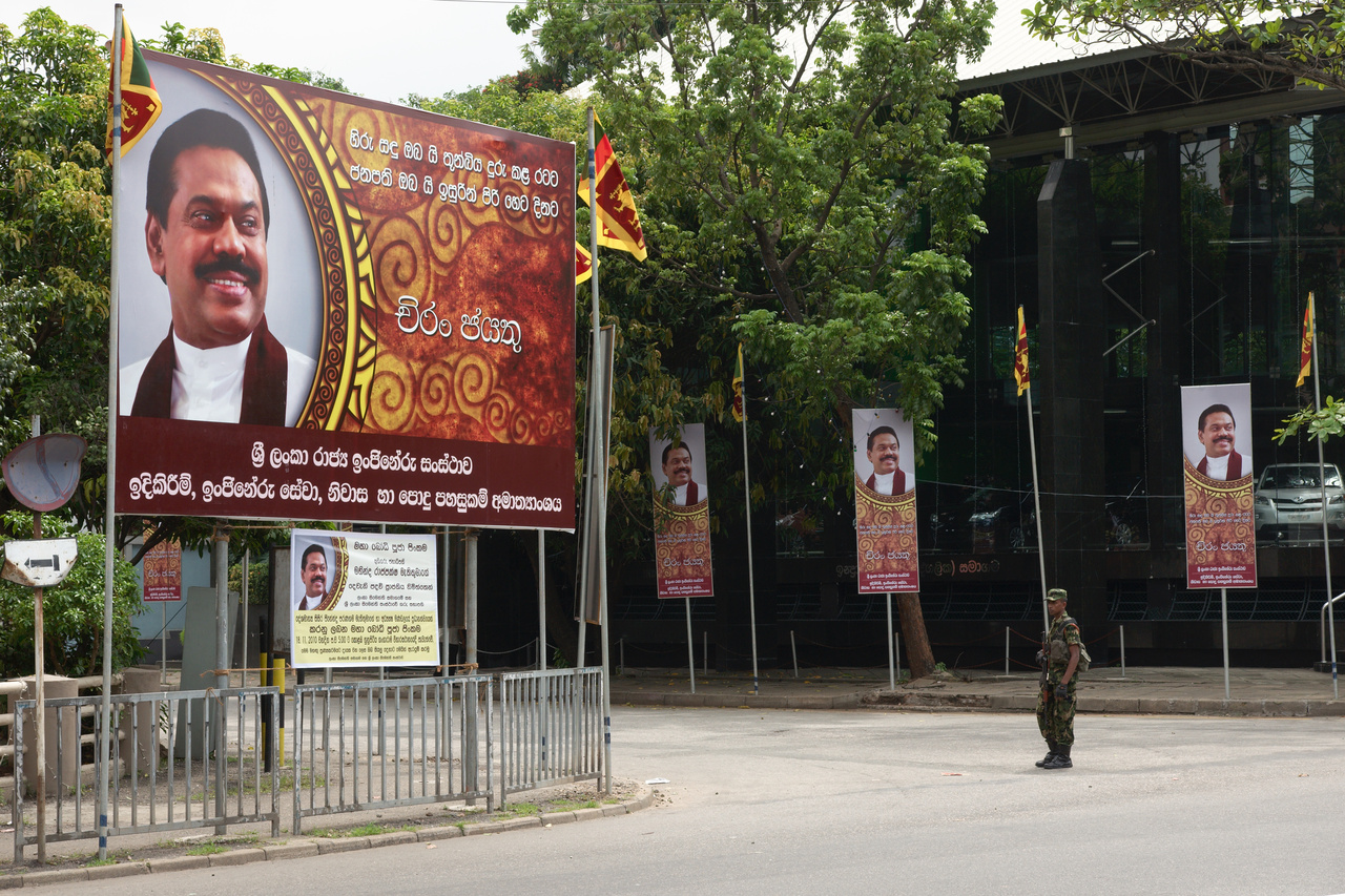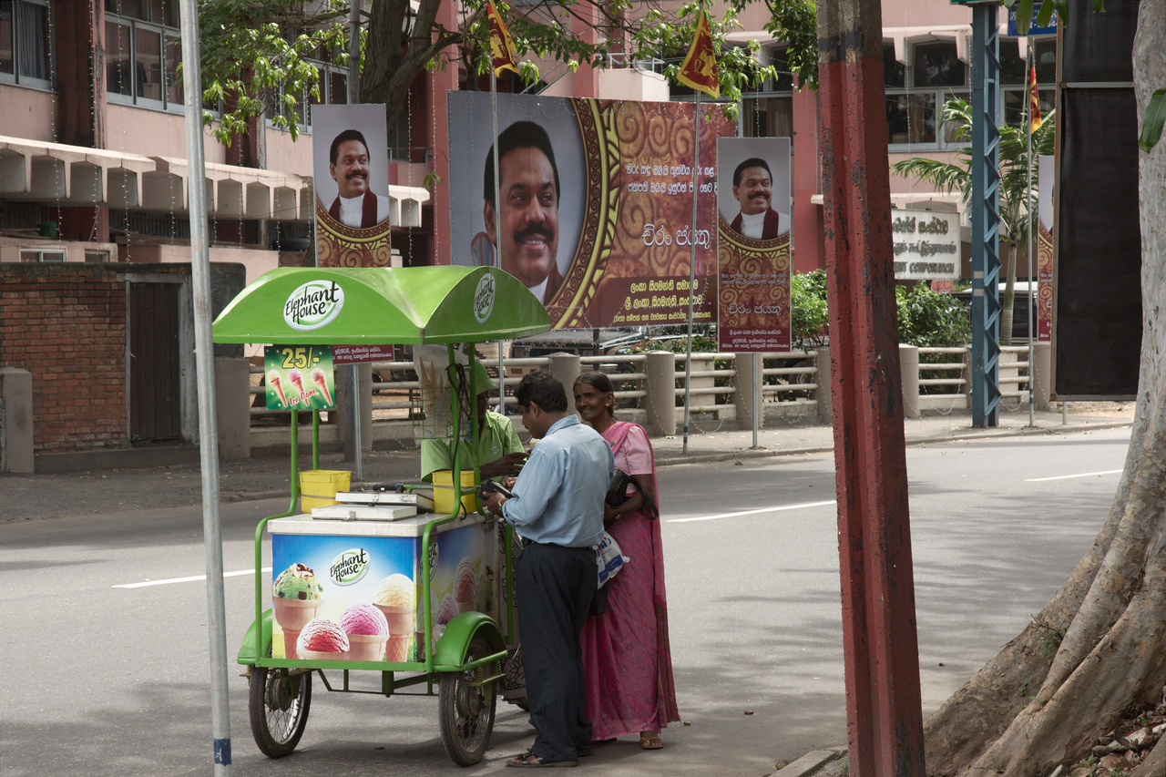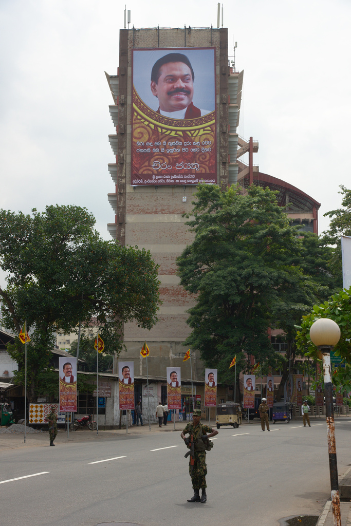 To take up the topic that I’ve started with a project contribution on Martin Storz’s Public Eye Blog: Yesterday was the inauguration ceremony for Sri Lanka’s president Mahinda Rajapakse. There are some doubts about the elections and their preliminaries, and whilst many of the people in Colombo welcome his presidency in the light of him having ended 30+ years of a bloody civil war, concerns about the way this country now is governed by the Rajapakse family remain. For more details just have a look at the wikipedia. Optically his inauguration was impressive, to say the least. Thousands of his portraits were distributed throughout the city of Colombo, together with flags of Sri Lanka, – a personality cult hitherto unknown in this country – and chains of lights now illuminate his posters at night (and I didn’t bring a tripod!).