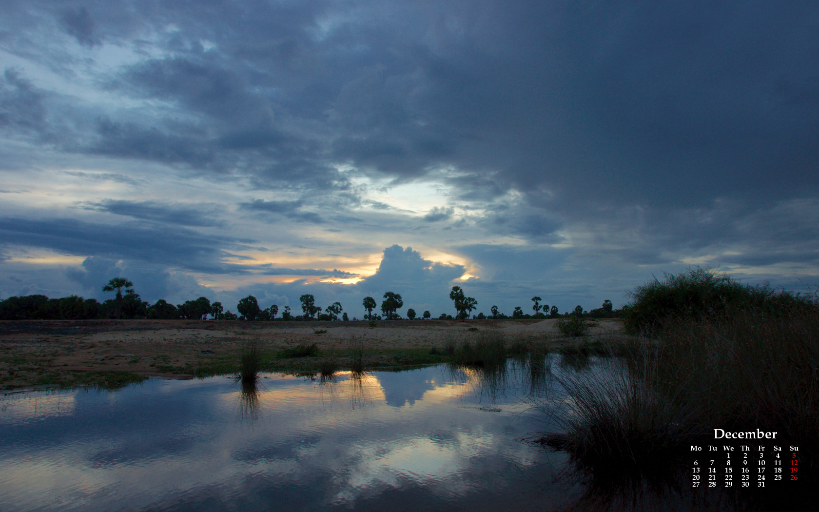 Not really christmassy, this year’s december wallpaper shows monsoon clouds over the beach of the Bay of Bengal. But then, it is tightly connected with christmas, as the houses in the area were given to the victims to the tsunami of Dec. 26th, 2004.
