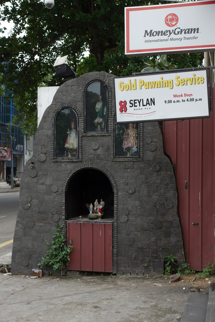 Despite being a Buddhist country, where the religion plays a major role in politics (and most of the time an unhealthy one, unfortunately), symbols and shrines of all religions can be seen in the street. Those two I found in Duplication Road, separated by only a small distance.