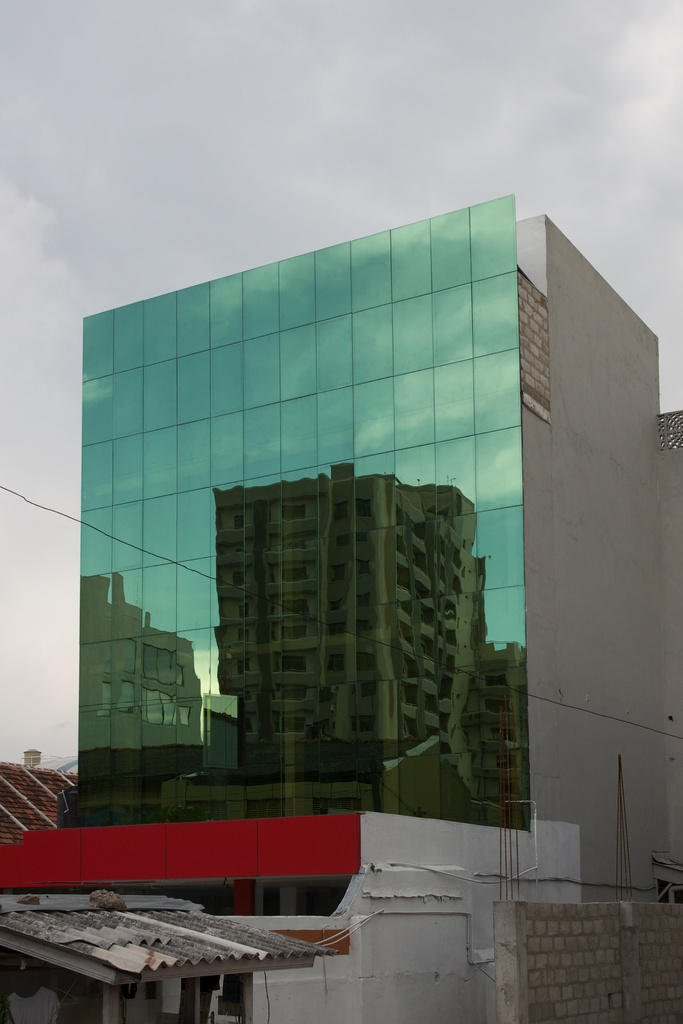 Carl, this „false front“ style is pretty popular in Sri Lanka. You can find such mirror glass facades even in quite remote, small places.