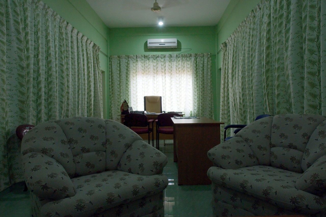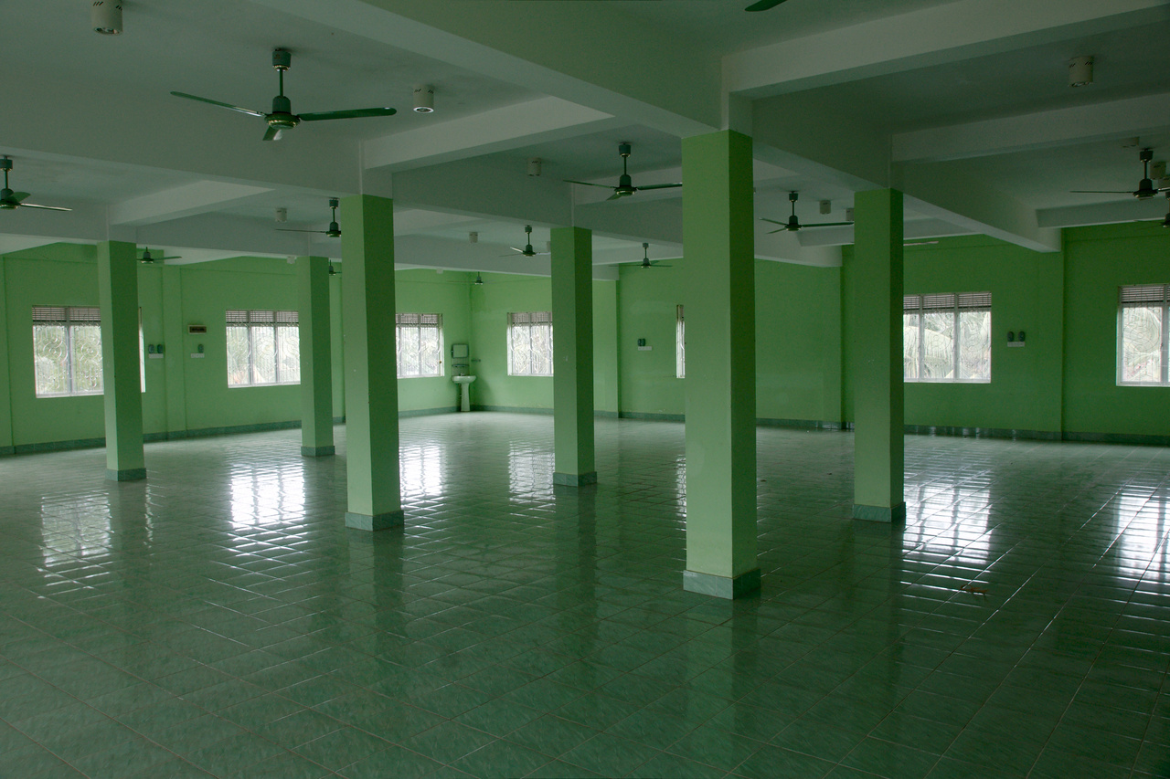 This is the just finished assembly hall in the small town of Oddaimavadi in the Eastern Province of Sri Lanka, about 20km north of Batticaloa. As this is a mainly Muslim village, the hall but also the superiors‘ offices are painted and decorated green. Immediately the german translation of Liza’s lesson in ‚My Fair Lady‘ came to my mind: In German, instead of ‚The Rain In Spain‘ she has to rehearse ‚Es grünt so grün‘, meaning ‚it greens so green‘. Colorwise it’s almost overkill.