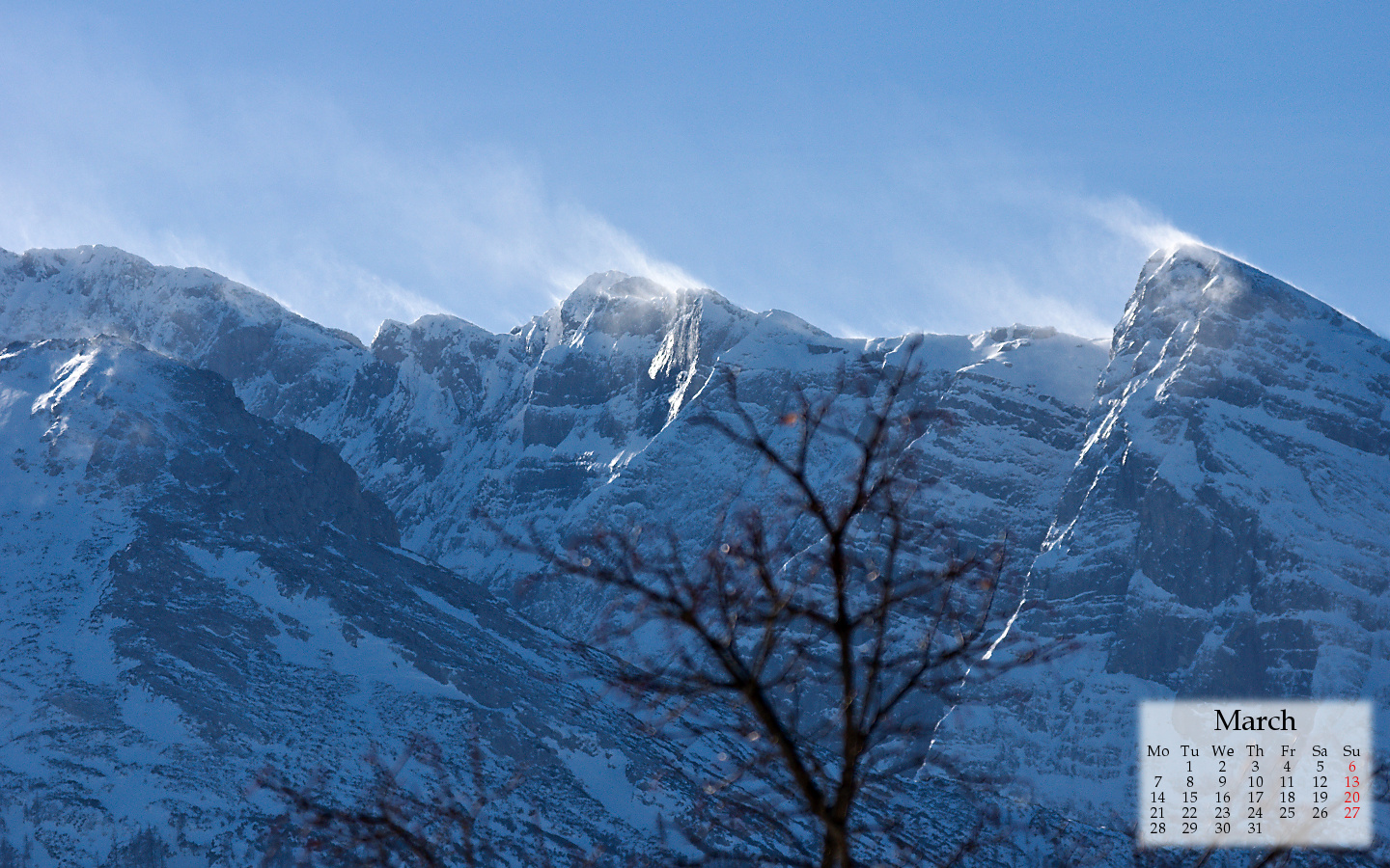 February went by fast and with it the greater part of winter’s darkness is gone. But cold and snow remain here in Bavaria in spite of the sometimes strong sunlight and the intense colors, and this is what I tried to transport in my march wallpapers.