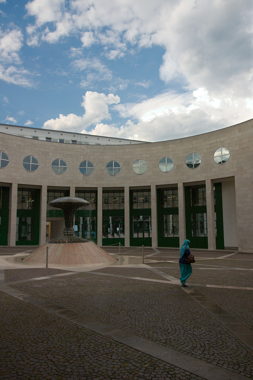 This image I made back in July. Besides that I fact that I like it, it may serve the purpose to illustrate why I hold my standard zoom in high esteem: My standard focal length would be more in the 35-50mm-e range. When this Muslim lady walked by, there would have been no chance to change lenses in the time I spotted her until she reached that crossing point.