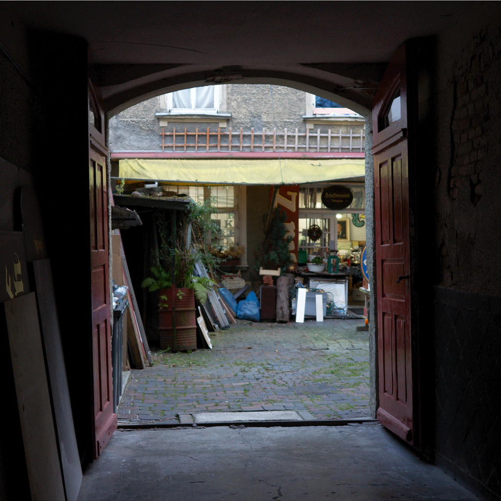 Certainly a visually interesting and beautiful doorway and doors. Not the normal American definition of a backyard of course. 🙂