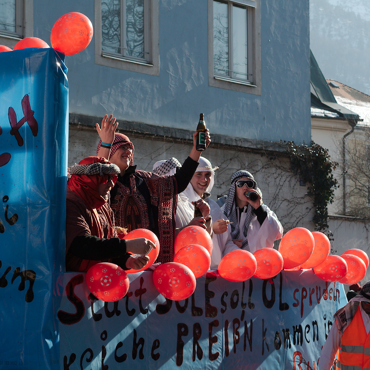 With minors it’s a really bad problem, but if the role models – i.e. those with a car, a girl/boy friend etc. drink, and if it fuels the business of the pub owner, what is to be expected? The Goaßlschnoizer brought their own stock for fear of drying-out on their long way through the city.
