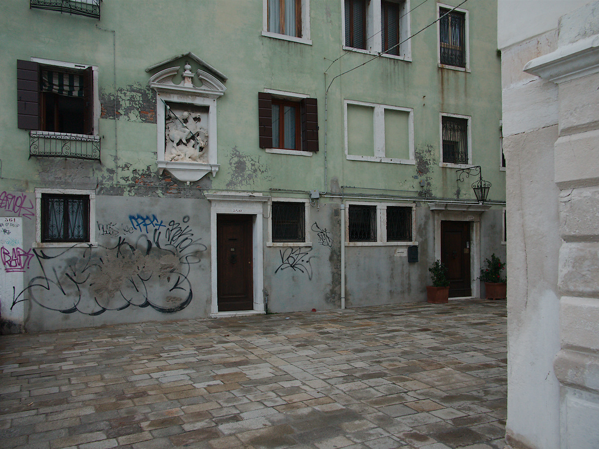 That soft color is great. As much of defacement as the graffiti is, the colors actually harmonize pretty well with the pastel green of building.
