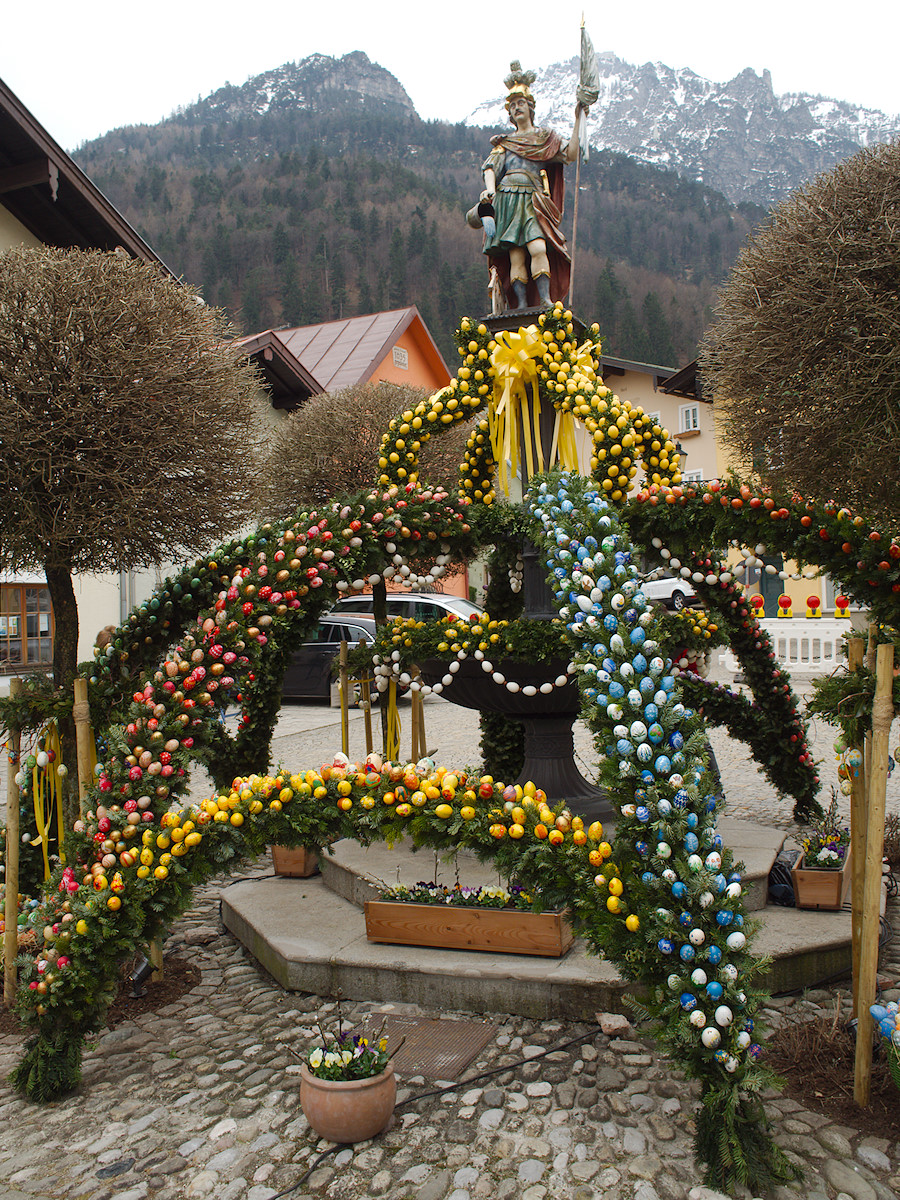 The padlock shown here is from Florianiplatz, the oldest quarter in my hometown Bad Reichenhall. Currently this place shows the „Osterbrunnen“ (easter fountain), a fountain topped by a statue of St. Florian and decorated for easter with fir sprigs and, believe it or not, over 4000 hand coloured easter eggs.