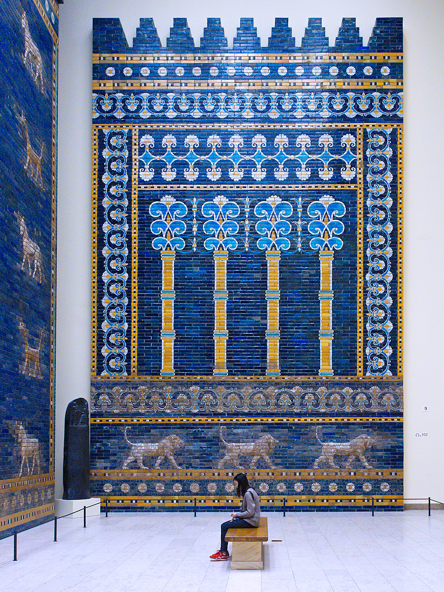For an hellenophil king in Munich, statues from a small temple on an Aegean island were robbed and shipped to Munich, where they found a new home in a museum. I found this pretty impressive, but then, Munich is only a province capital, and the Prussian rulers got somewhat bigger pieces of booty like this set of tiles, that had covered the eighth gate of Babylon. (See wikipedia here). The word impressive simply got another meaning for me.