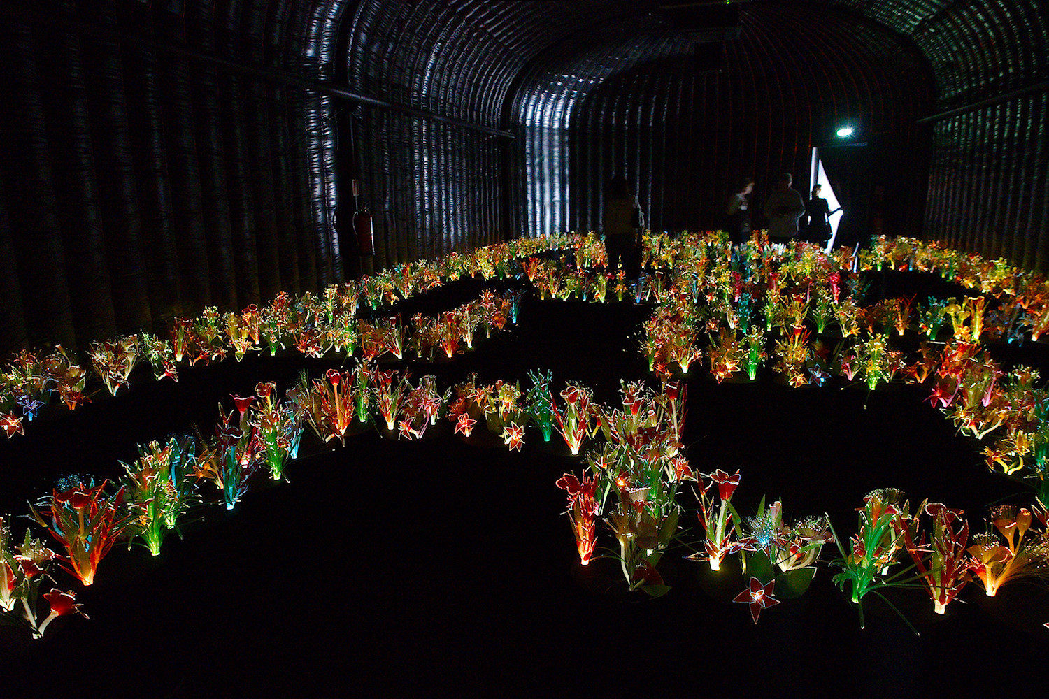 The Portuguese artist Joana Vasconcelos created that artificial Garden of Eden for the 2015 Biennale, sponsored by the master of plastic watches, Swatch. Oh, nothing wrong with plastic watches, and nothing but admiration for the Swatch Brand Management, making generations of naives put down hard earned cash for a bit of PVC (or any other synthetic material) and a feeling. But I admire Vasconcelos for having won that supporter for her artificial eden installation, consisting of thousands of plastic flowers, lamps and optical fibers, glowing in air conditioned darkness in a makeshift exhibition pavillion, while out there was Venice. Definitely a very fine and subtle provocation, already in itself, but topped by that plasticky sponsor.