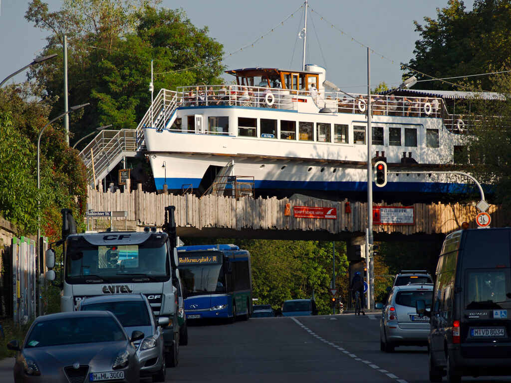 Vor Jahren hätte wir das Foto wohl als kurios empfunden wegen der Kontrastkopplung von Schiff und Brücke. Aber es gibt kein unschuldiges Auge.