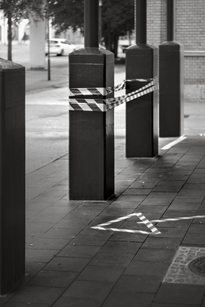 1. Wahrscheinlich werden die Absperrbänder und Bodenmarkierungen das Symbol der Coronakrise sein/werden, noch vor dem Mundschutz.
