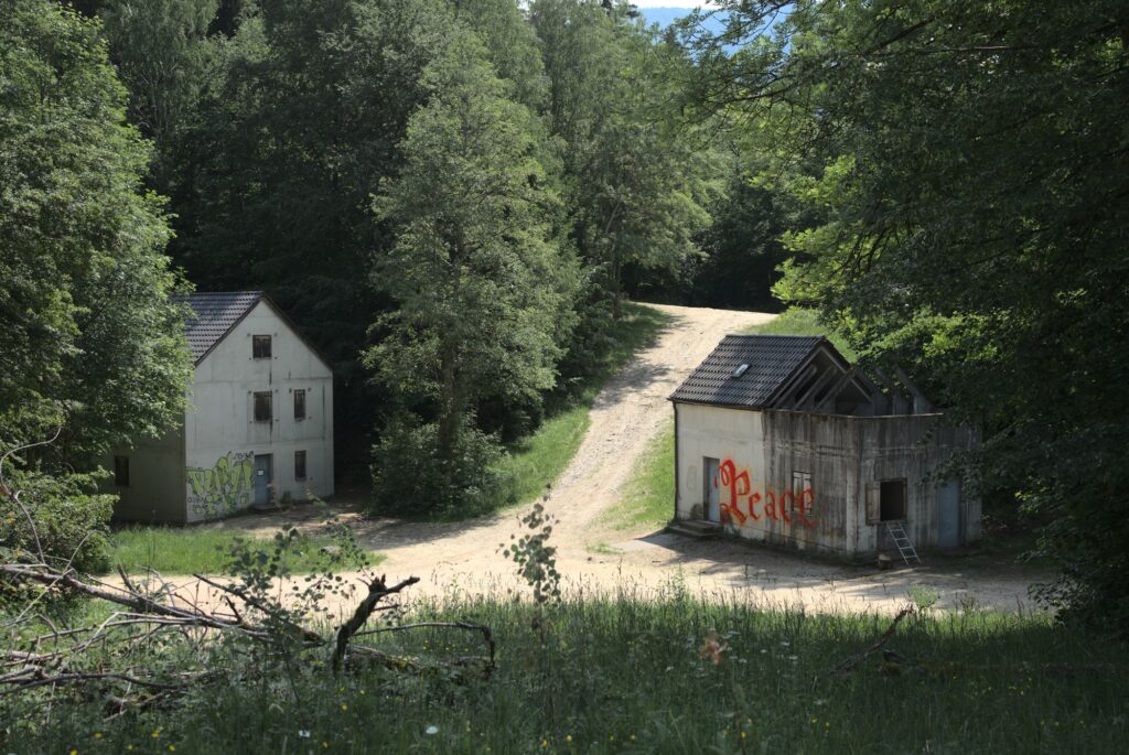 @Jürgen, @Uwe: Wirtschaftsgebäude im weiteren Sinne – auf dem Standortübungsplatz hier üben die Soldaten darin – deshalb auch das Dachstuhl-Gerippe rechts. Und die versprengten Pazifisten am Ort haben sich im Graffiti verewigt 😉