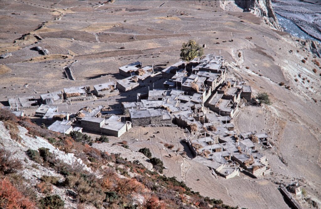 Even back then, a settlement structure that is exclusively adapted to pedestrians (and cattle) was extraordinary. Now of course a track for 4WD vehicles exists, and accomodations for tourists are plenty. It still is a strenous walk around the Annapurnas, but not that kind of adventure any more. Just imagine, 30 days without even a land line phone…