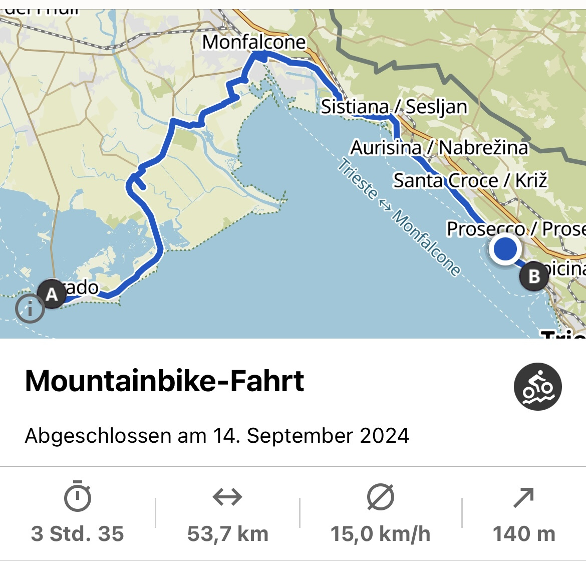The bike trip coming from Grado was unspectacular but unexpectedly dangerous: Cyclists on main roads are – as in most places – second class citizens. We had avoided such roads on the biggest part of our trip, but on the last day had thought to take it easy riding along the coast, hoping that the cars would prefer the parallel highway. Well, we survived, but my expletions were many.