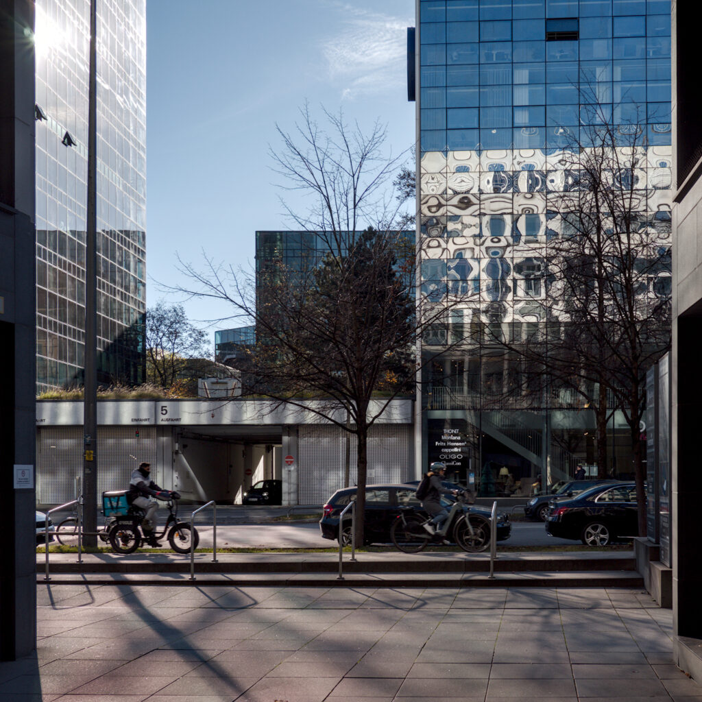 Die »psychedelischen« Spiegelungen sind charmant. Und lassen sich auch ohne Ortskenntnisse leicht nachvollziehen. An den zwei (helleren) Helligkeitsstufen auf der Schattseite des linken Gebäudes studiere ich noch immer rum. Schönes Bild!
